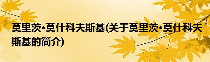 莫里茨·莫什科夫斯基(关于莫里茨·莫什科夫斯基的简介)